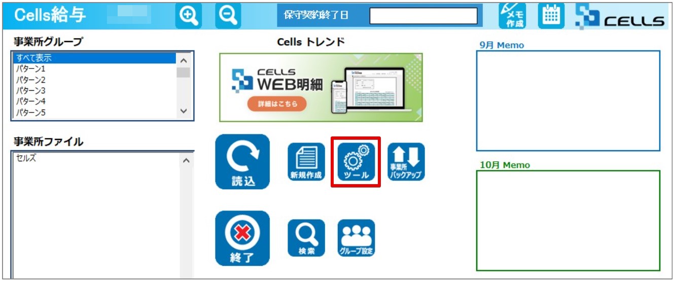 ※『Cells給与』が1台のパソコンのみで起動されている状況で実施してください。