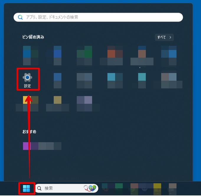 1.Windowsのスタートメニューより「設定」を開く