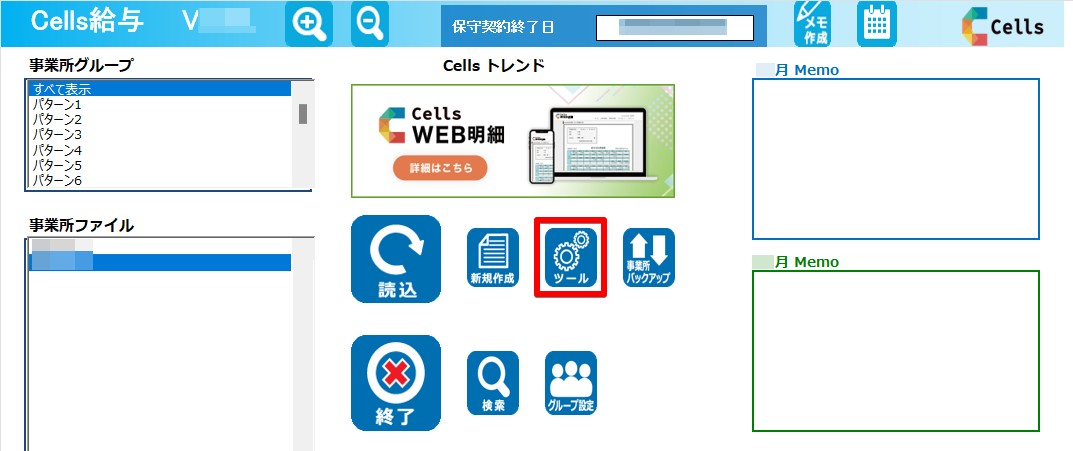 ※『Cells給与』が1台のパソコンのみで起動されている状況で実施してください。